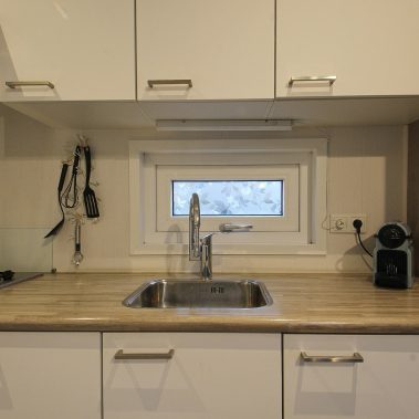De grote raam en schuifpui zijn voorzien van rolluiken.